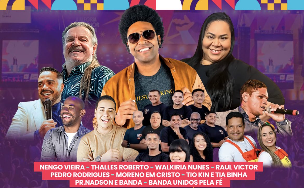 Com o tema “Venha o Teu Reino”, a programação traz atrações de destaque no cenário gospel nacional e regional, entre elas Thalles Roberto, Nengo Vieira, Walkíria Nunes, Raul Victor, Pedro Rodrigues, Moreno em Cristo, Tio Kin e Tia Binha, além do Pr. Nadson e Banda e da Banda Unidos Pela Fé.