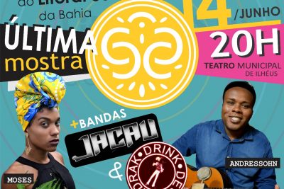 A quarta e última mostra do Encontro de Compositores do Litoral Sul da Bahia apresenta pocket shows com performances inéditas de compositores individuais e bandas autorais. As apresentações acontecem dia 14 de junho, às 20h, no Teatro Municipal de Ilhéus. O ingresso custa 1kg de alimento não perecível, que e será doado para a Fundação Fé e Alegria – Ilhéus.