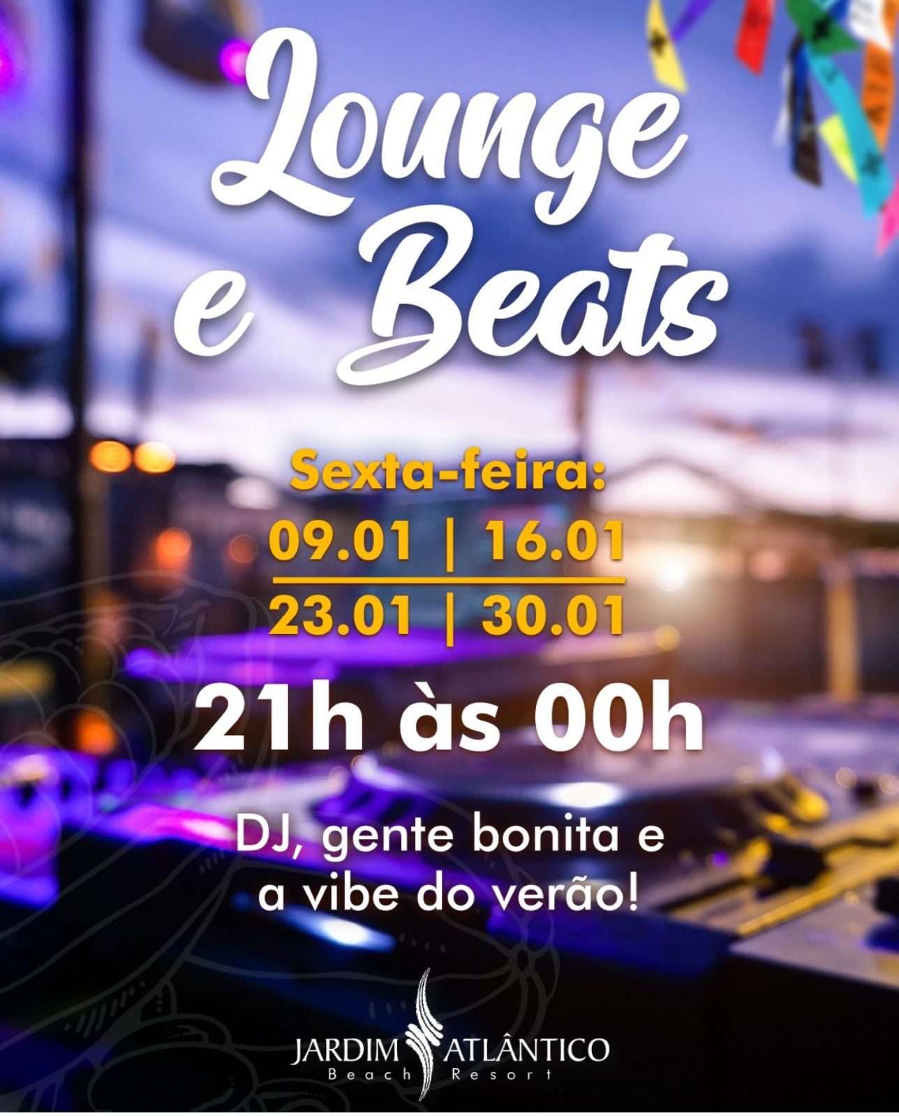 O verão no Jardim Atlântico Beach Resort ganha ainda mais ritmo com o Lounge & Beats, projeto que movimenta as noites de sexta-feira com música, clima leve e a energia característica da estação mais quente do ano.