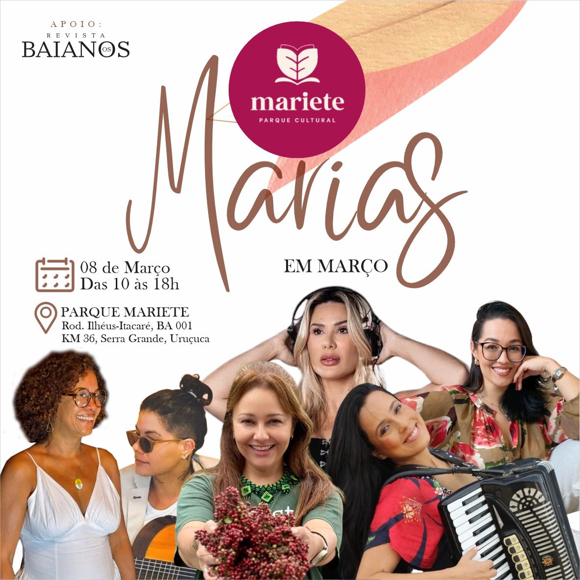 O evento, intitulado ‘Marias em Março’, propõe um dia de conexão, natureza, cultura e celebração feminina, reunindo mulheres da região em uma programação cuidadosamente pensada para valorizar histórias, fortalecer vínculos e apresentar o Parque Mariete como um dos mais novos e promissores pontos turísticos do sul da Bahia.