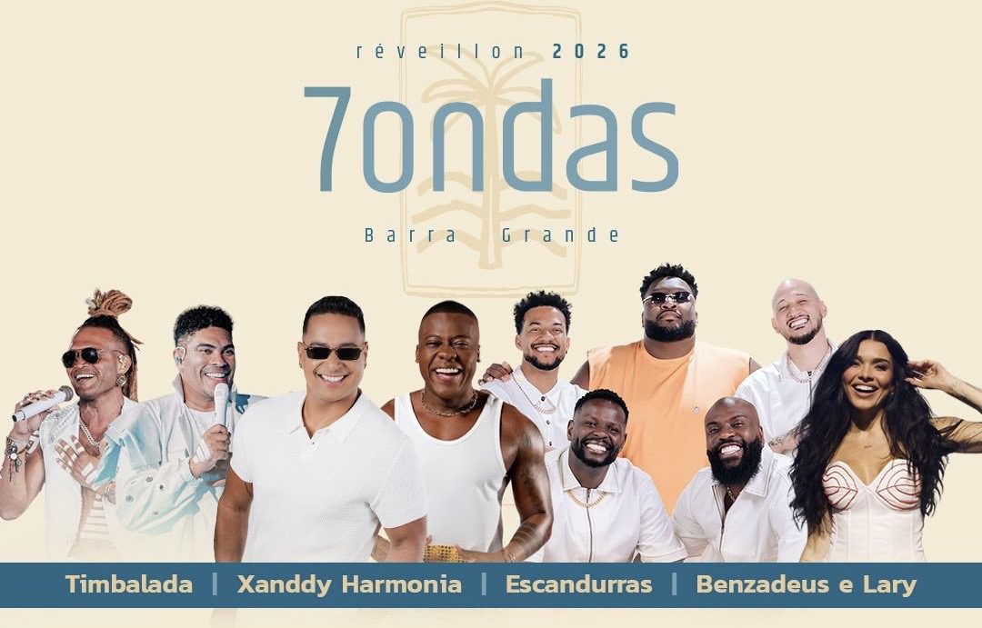Barra Grande se prepara para viver uma das viradas de ano mais animadas da Bahia. O Réveillon 7 Ondas chega com uma programação de quatro dias — 28, 29, 30 e 31 de dezembro — reunindo grandes nomes da música e uma estrutura completa para receber o público com conforto, qualidade, glamour e energia lá em cima.