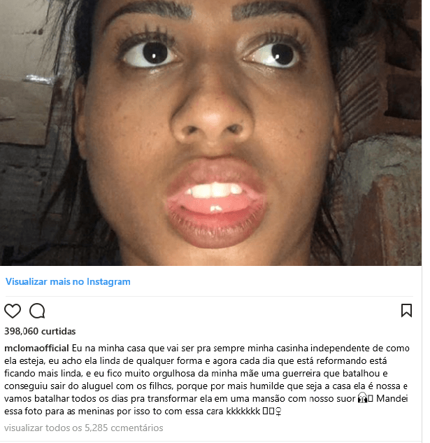 “Eu na minha casa que vai ser pra sempre minha casinha independente de como ela esteja, eu acho ela linda de qualquer forma e agora cada dia que está reformando está ficando mais linda, e eu fico muito orgulhosa da minha mãe uma guerreira que batalhou e conseguiu sair do aluguel com os filhos, porque por mais humilde que seja a casa ela é nossa e vamos batalhar todos os dias pra transformar ela em uma mansão com nosso suor”, escreveu ela no post que teve mais de 370 mil curtidas.