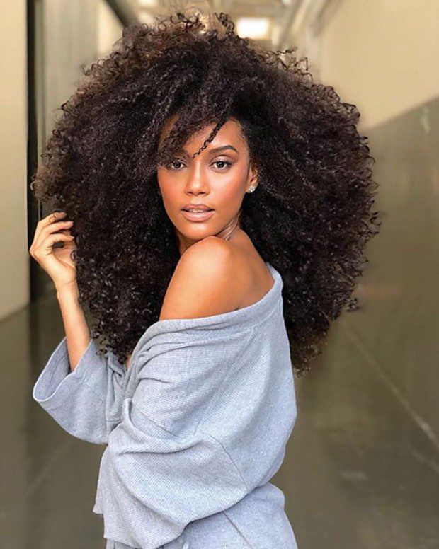 “Um dos looks mais comentados nas redes sociais, Taís Araújo prova que os cachos e crespos estão com tudo em uma versão black power longa. Esse visual tem camadas bem agressivas. Elas são mais altas e necessitam ser assim porque se cabelo é muito reto, o volume acaba se acentuando somente na parte debaixo e aí o visual parece uma pirâmide. Portanto, essas camadas existem justamente para distribuir o volume, principal característica do corte. Para sustentar esse estilo, a mulher precisa ter uma personalidade forte — ele é estiloso, supersexy e extremamente elegante. Para esse look é fundamental evitar franja para manter o contorno do rosto mais alongado. Se pensar em desfiados, vale apostar na técnica na parte de dentro da cabeça, do contrário fica difícil o manuseio para domar os cachos. No dia a dia, opte por produtos específicos para cabelo cacheado, que por natureza são mais emolientes. Outra dica em relação às químicas é evitar as descolorações muito agressivas, tente dois tons abaixo, no máximo, senão, pode prejudicar a definição natural dos cachos. Para finalizar, jogue o cabelo para baixo e use o pente em forma de garfo para eriçar da raiz puxando para as pontas. Na hora de levantar, passe uma gota de reparador de ponta de sílica para auxiliar a combater o frizz.”