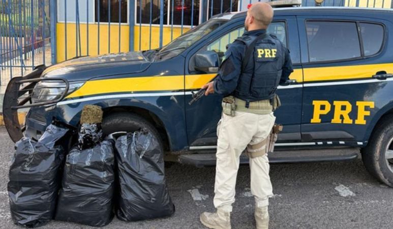Durante a vistoria no automóvel, os agentes encontraram três sacos contendo substância análoga à maconha, totalizando aproximadamente 30 quilos da droga, escondidos no porta-malas.