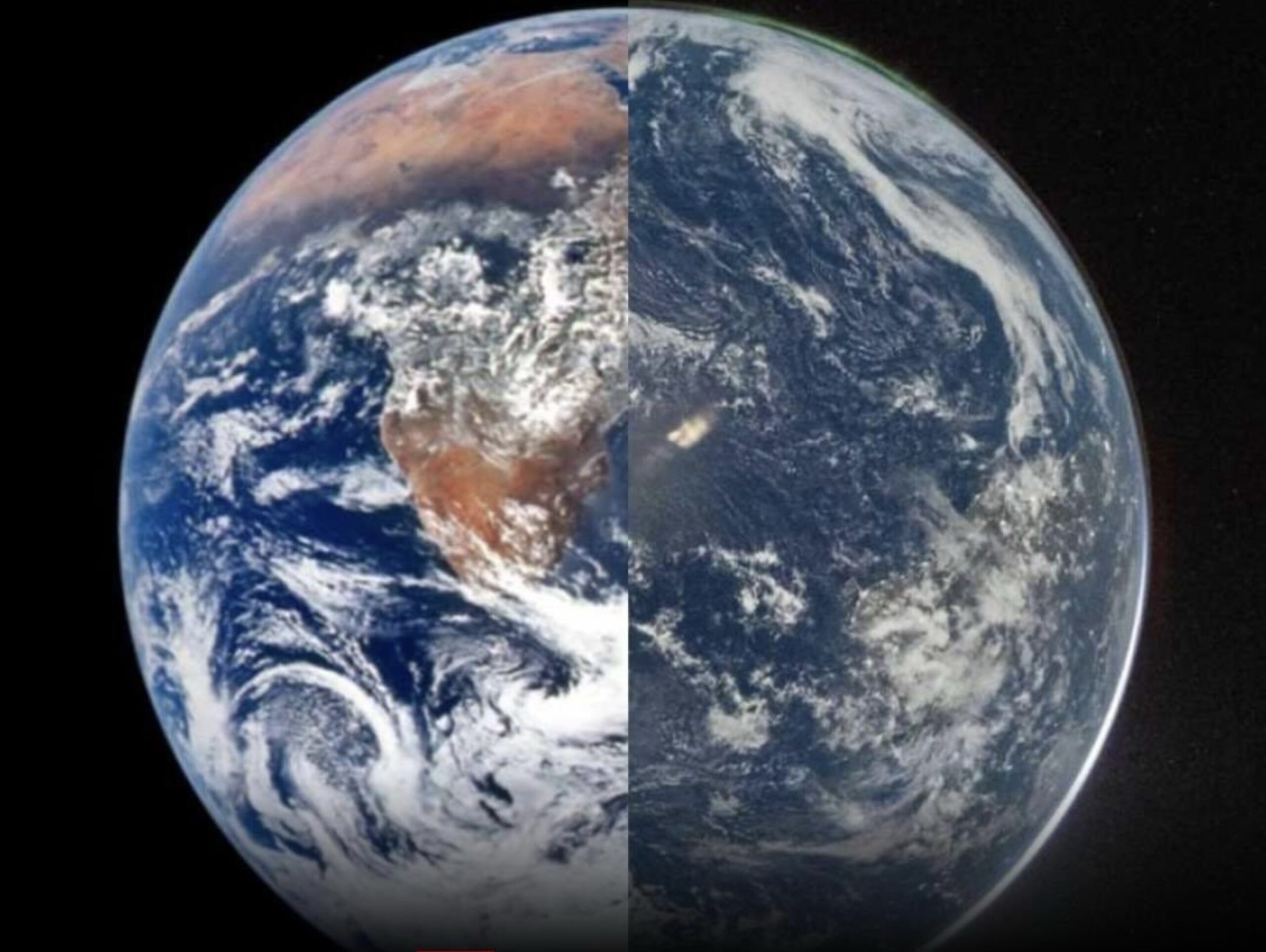 Já no novo registro, feito recentemente, a Terra aparece com tons mais suaves, com destaque para o continente africano. Outro detalhe observado é a presença discreta de auroras nos polos, com um brilho esverdeado sutil.
