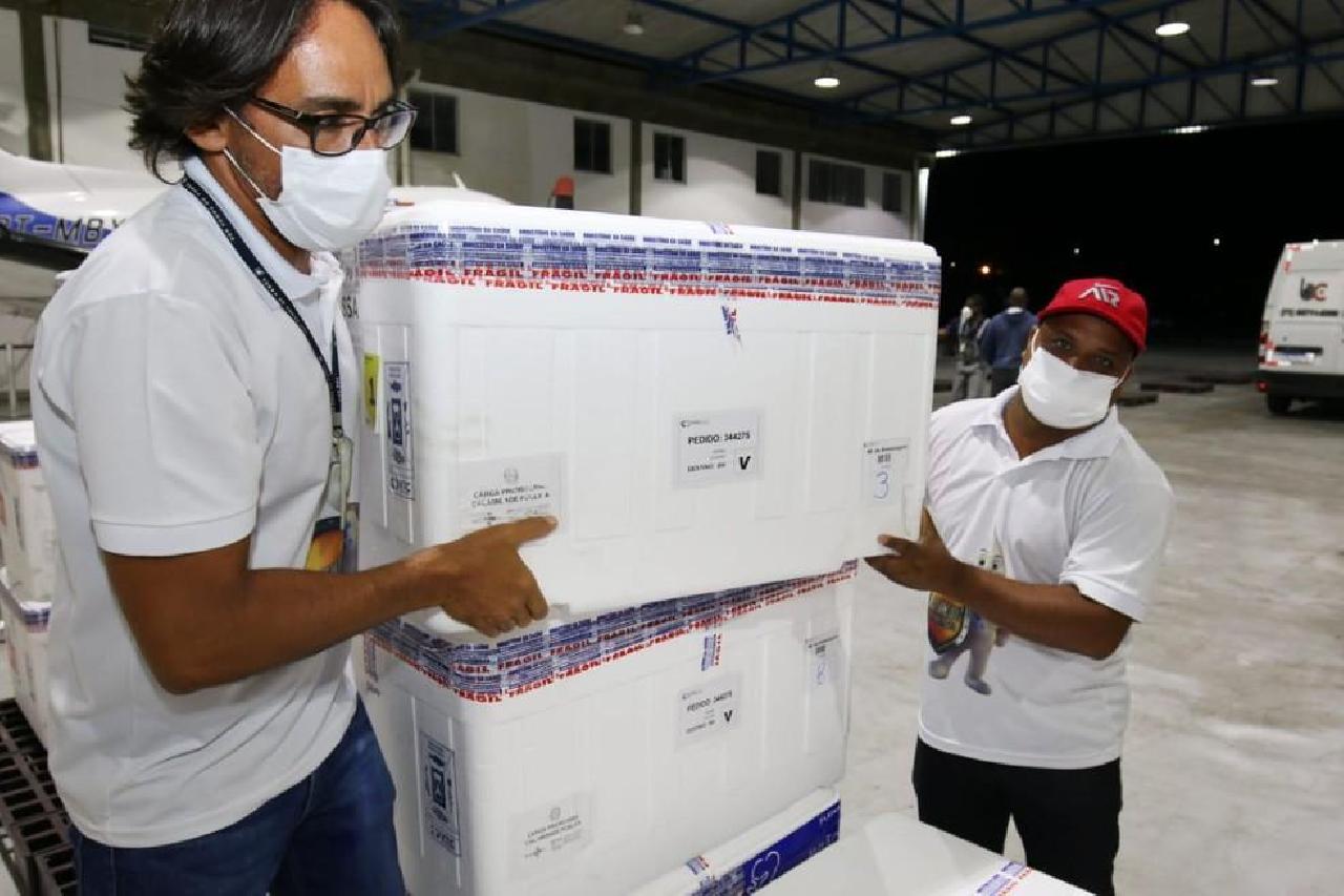 Um avião com 178,6 mil doses da vacina da CoronaVac chegou ao aeroporto de Salvador, por volta das 23h10 de terça-feira (9). Os imunizantes serão distribuídos para o interior da Bahia na manhã desta quarta-feira (10).