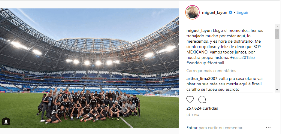 O mexicano Miguel Layún foi alvo de críticas de torcedores da seleção brasileira, após ter dado um pisão no tornozelo direito de Neymar. O perfil oficial do jogador foi invadido por mensagens de protesto e provocações.