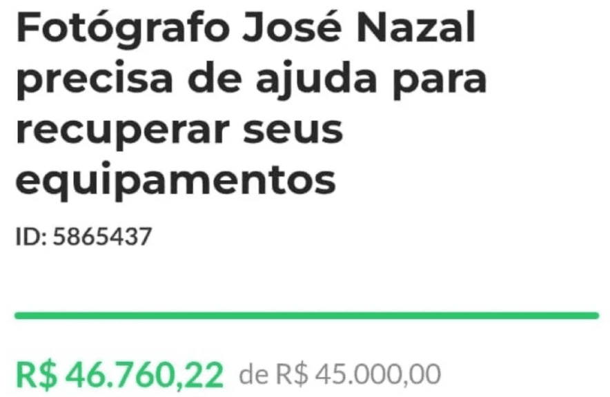 A mobilização criada para auxiliar o fotógrafo e historiador ilheense José Nazal alcançou um resultado expressivo em menos de 24 horas. A vakinha virtual, lançada no domingo (28), já ultrapassou o valor estipulado para a reposição dos equipamentos profissionais perdidos em um acidente.