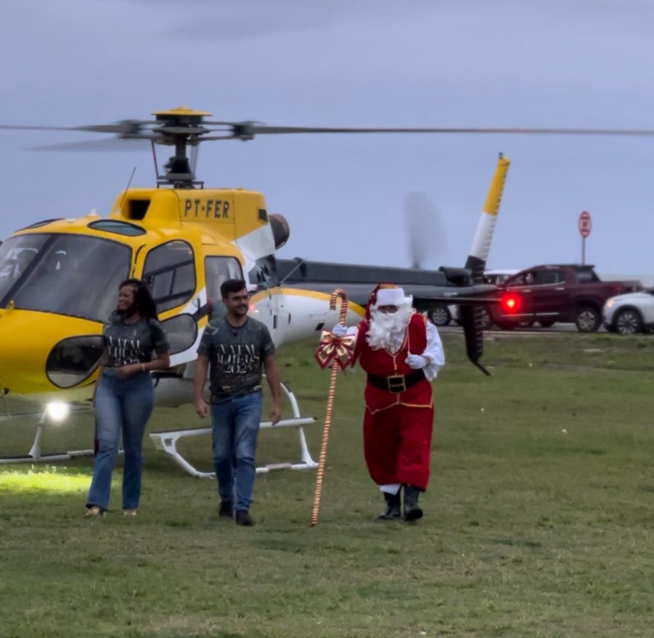 Por volta das 17h30, o bom velhinho pousou de helicóptero, em grande estilo, acompanhado do prefeito Valderico Júnior e da vice-prefeita Vanessa Gedeon. A multidão reagiu com euforia, gritos e aplausos, transformando o momento em um espetáculo emocional que rapidamente se espalhou pelas redes sociais.