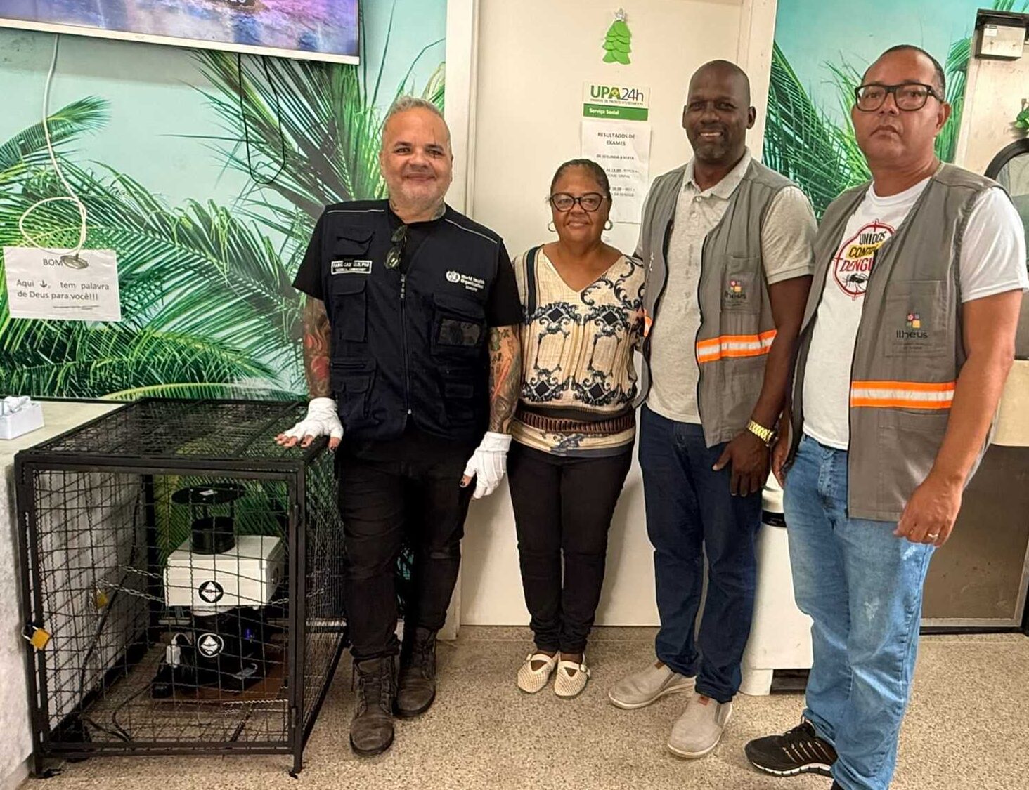 A cidade de Ilhéus deu mais um passo importante no enfrentamento ao mosquito Aedes aegypti com a instalação de uma nova armadilha tecnológica na UPA 24 horas, como parte do Projeto Unidos Contra a Dengue. A ação foi acompanhada de treinamento para os agentes de combate às endemias, promovido pela ONG Embaixada Verde, em parceria com o Ministério da Saúde e a Prefeitura de Ilhéus.