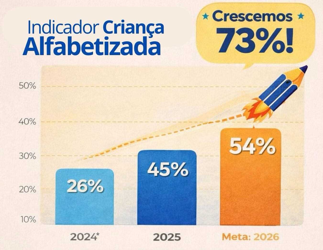Para 2026, a meta é ainda mais ambiciosa: alcançar 54% de alfabetização infantil. Para isso, o município pretende manter e ampliar as ações já implementadas, reforçando o compromisso com a qualidade da educação básica.