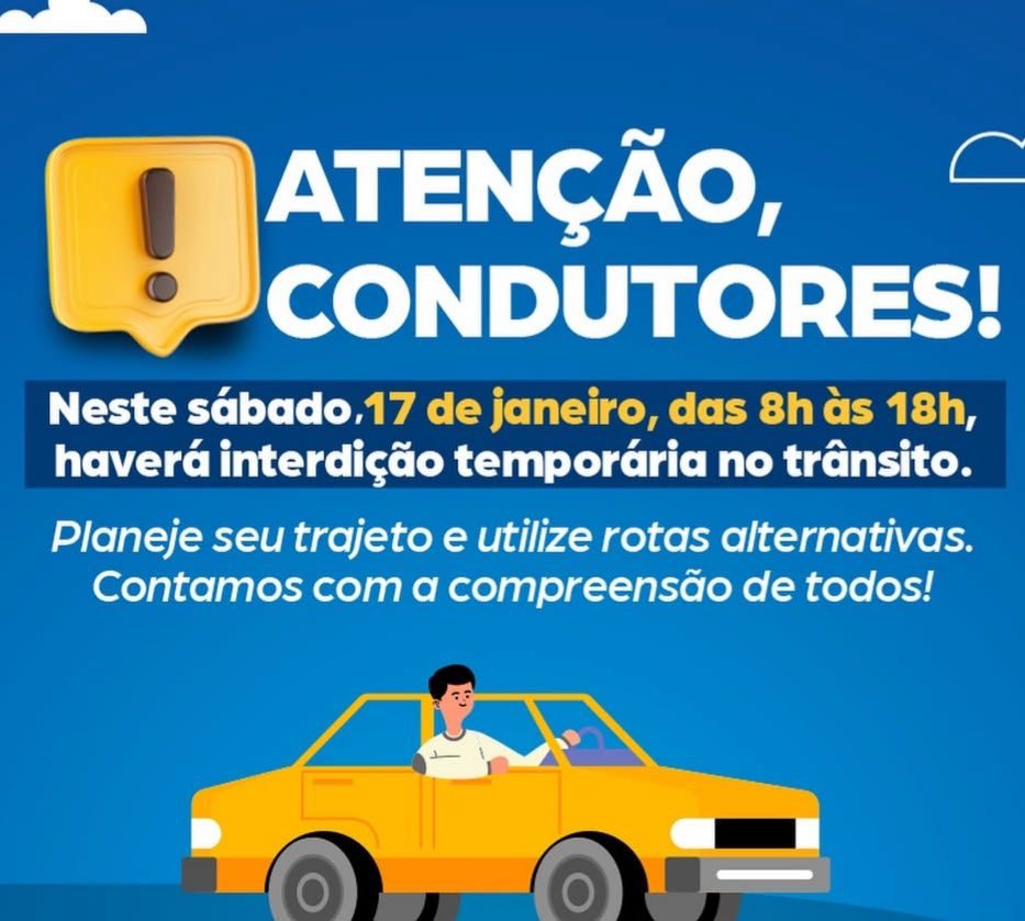 Condutores devem ficar atentos às mudanças no trânsito programadas para este sábado, dia 17 de janeiro. Das 8h às 18h, haverá interdição temporária em diversas vias do centro, conforme comunicado oficial divulgado pela Prefeitura.