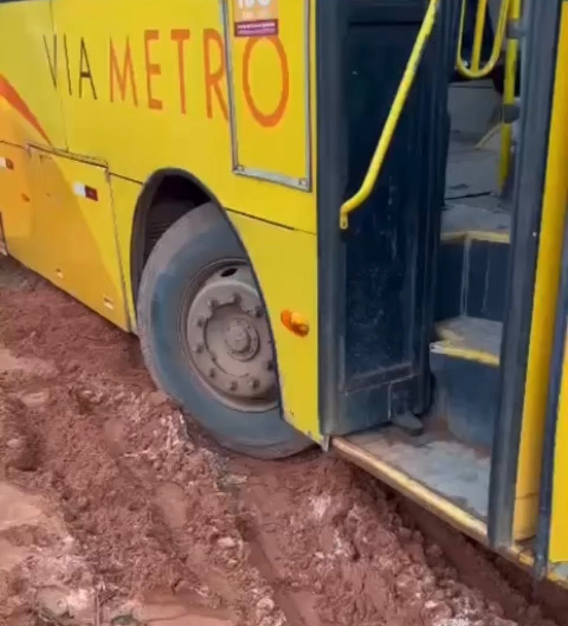 De acordo com informações que chegaram à redação, o veículo da empresa Viametro ficou preso em um trecho tomado por lama, situação que já tem se tornado frequente na região.