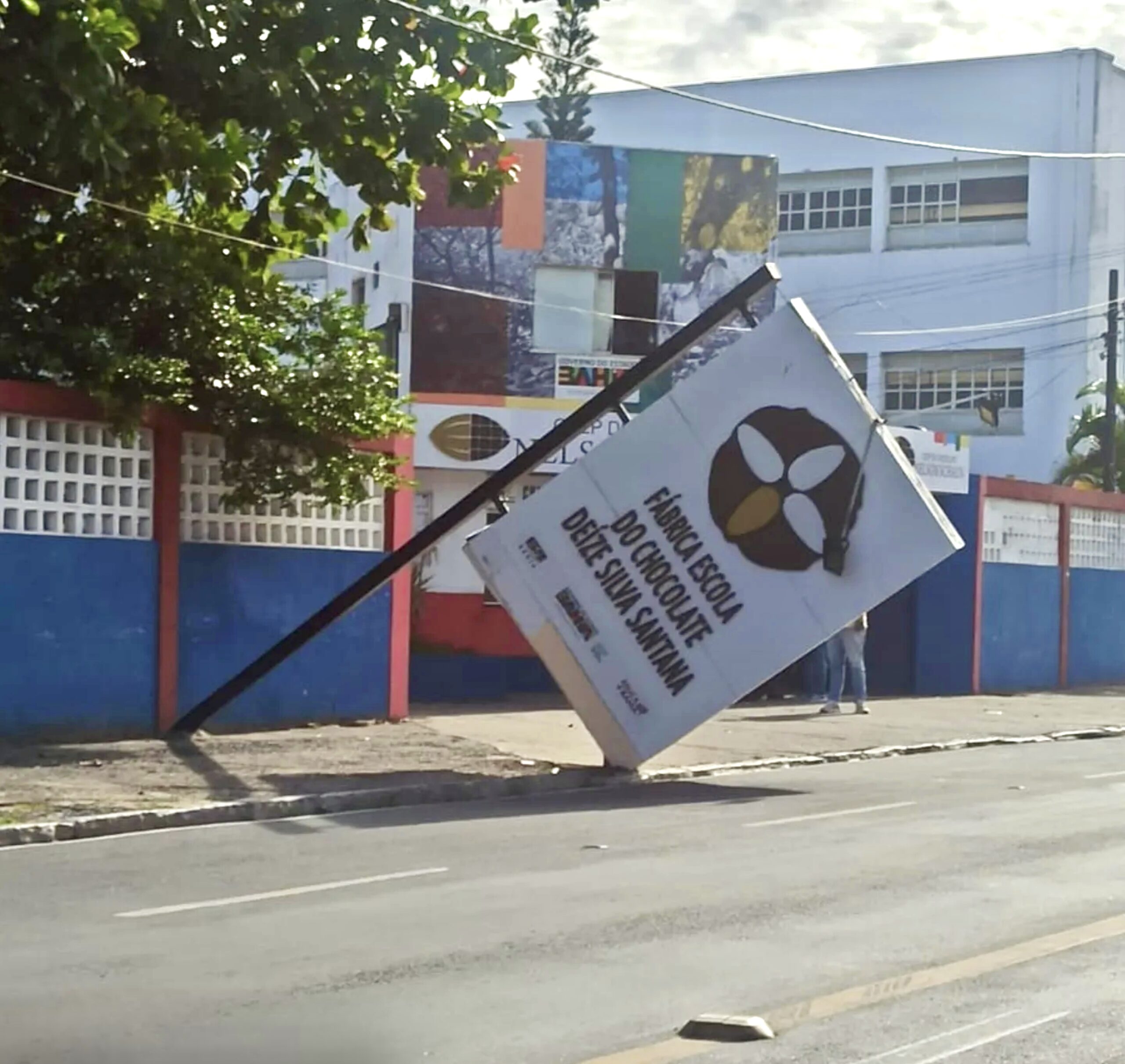 Uma situação de risco chamou a atenção de moradores em Ilhéus após a estrutura de um letreiro desabar em via pública.