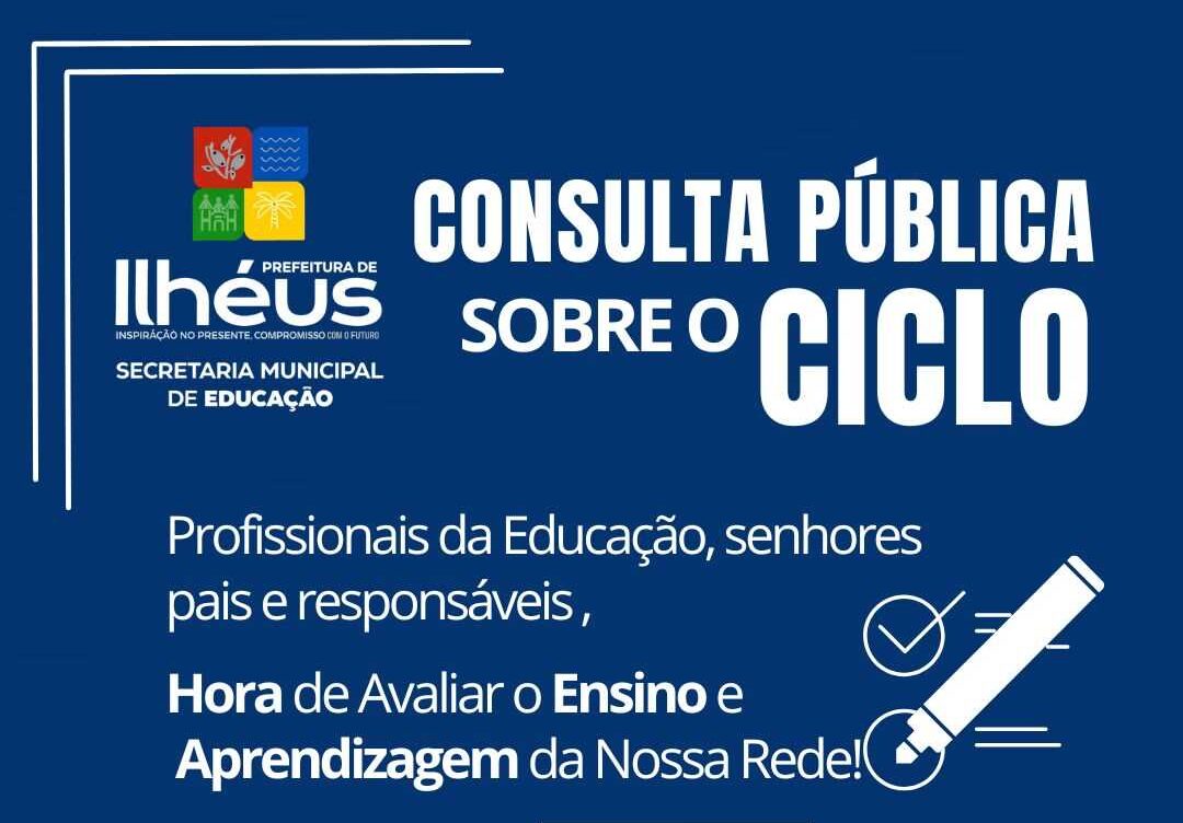 A Prefeitura de Ilhéus, por meio da Secretaria de Educação, iniciou duas consultas públicas online para avaliar o Ciclo de Aprendizagem na rede municipal. O objetivo é ouvir tanto as famílias quanto os educadores para analisar as práticas educativas e sugerir melhorias na qualidade do ensino. A iniciativa busca entender como o aprendizado chega aos estudantes e como a organização do ensino pode evoluir de forma transparente.