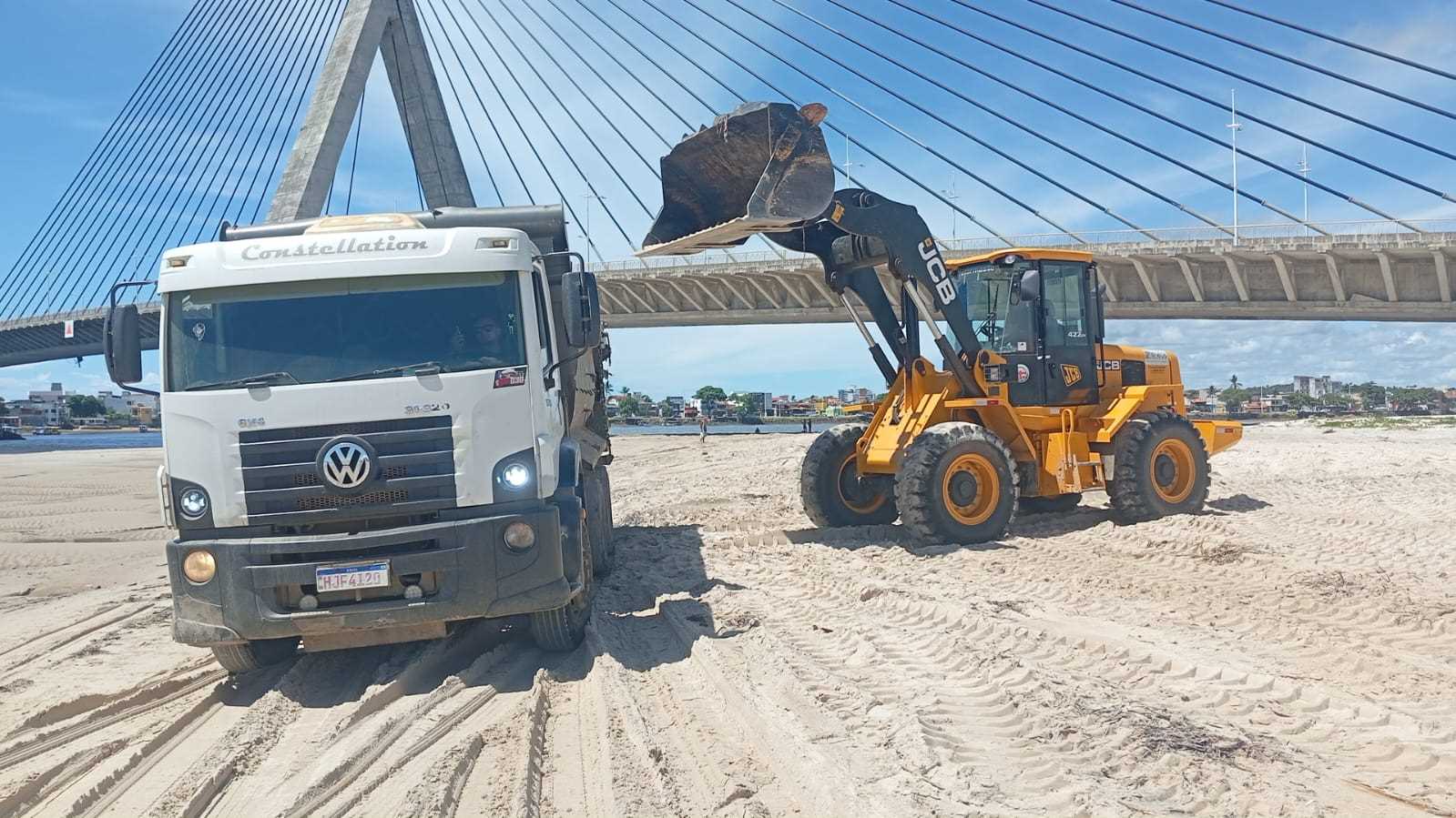 A operação conta com o apoio de máquinas pesadas para retirar as plantas aquáticas acumuladas na faixa de areia, garantindo melhores condições para moradores, turistas e trabalhadores que dependem do litoral.