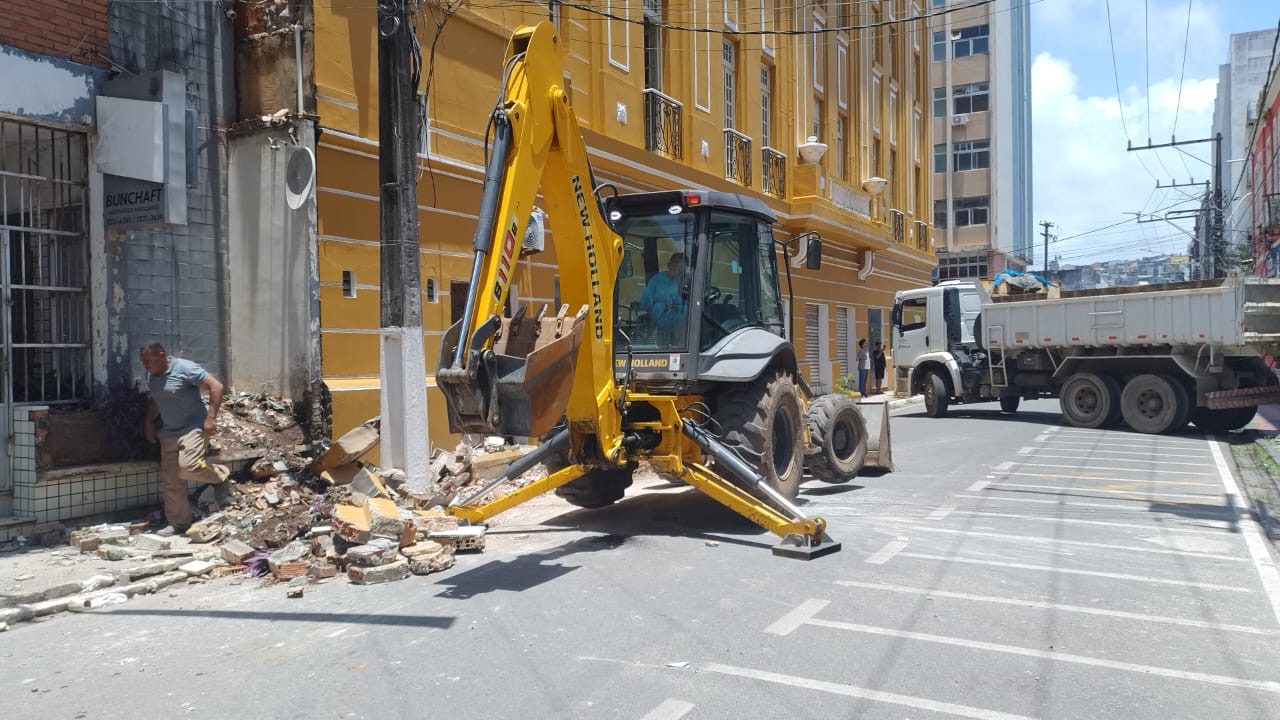 Prefeitura de Ilhéus remove escombros e realiza limpeza após desabamento na Rua Eustáquio Bastos