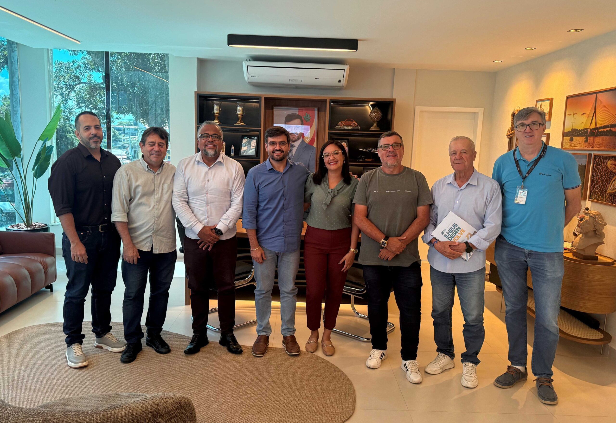 A Prefeitura de Ilhéus se reuniu nesta quinta-feira (16) com representantes da Câmara de Dirigentes Lojistas para discutir estratégias voltadas ao fortalecimento do comércio local. O encontro contou com a presença do prefeito Valderico Junior e do secretário de Desenvolvimento Econômico, Paulo Ganem.