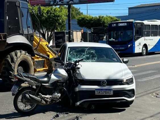 De acordo com as informações, o condutor de um carro tentou fazer uma “roubadinha” — manobra proibida — para acessar a via, no momento em que um motociclista seguia no sentido da estação rodoviária. A imprudência resultou na colisão.