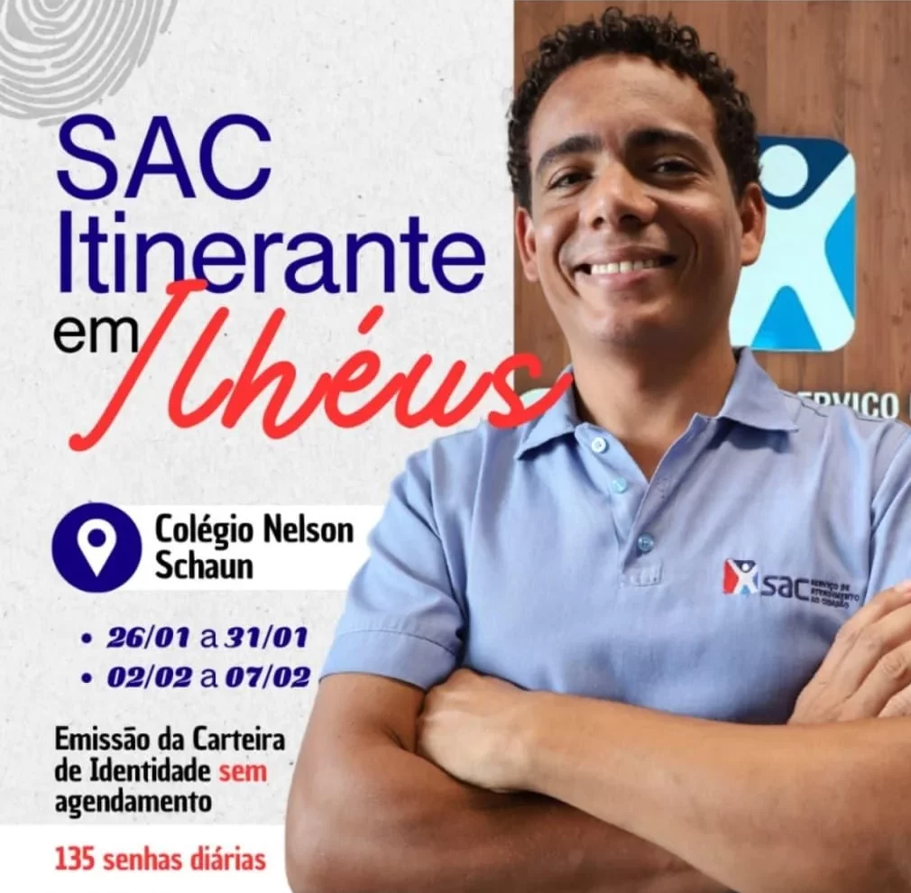 O SAC Itinerante inicia nesta segunda-feira (26) atendimento em Ilhéus para emissão da Carteira de Identidade, ampliando o acesso da população aos serviços de documentação. A ação acontece no Colégio Nelson Schaun, sem necessidade de agendamento prévio.