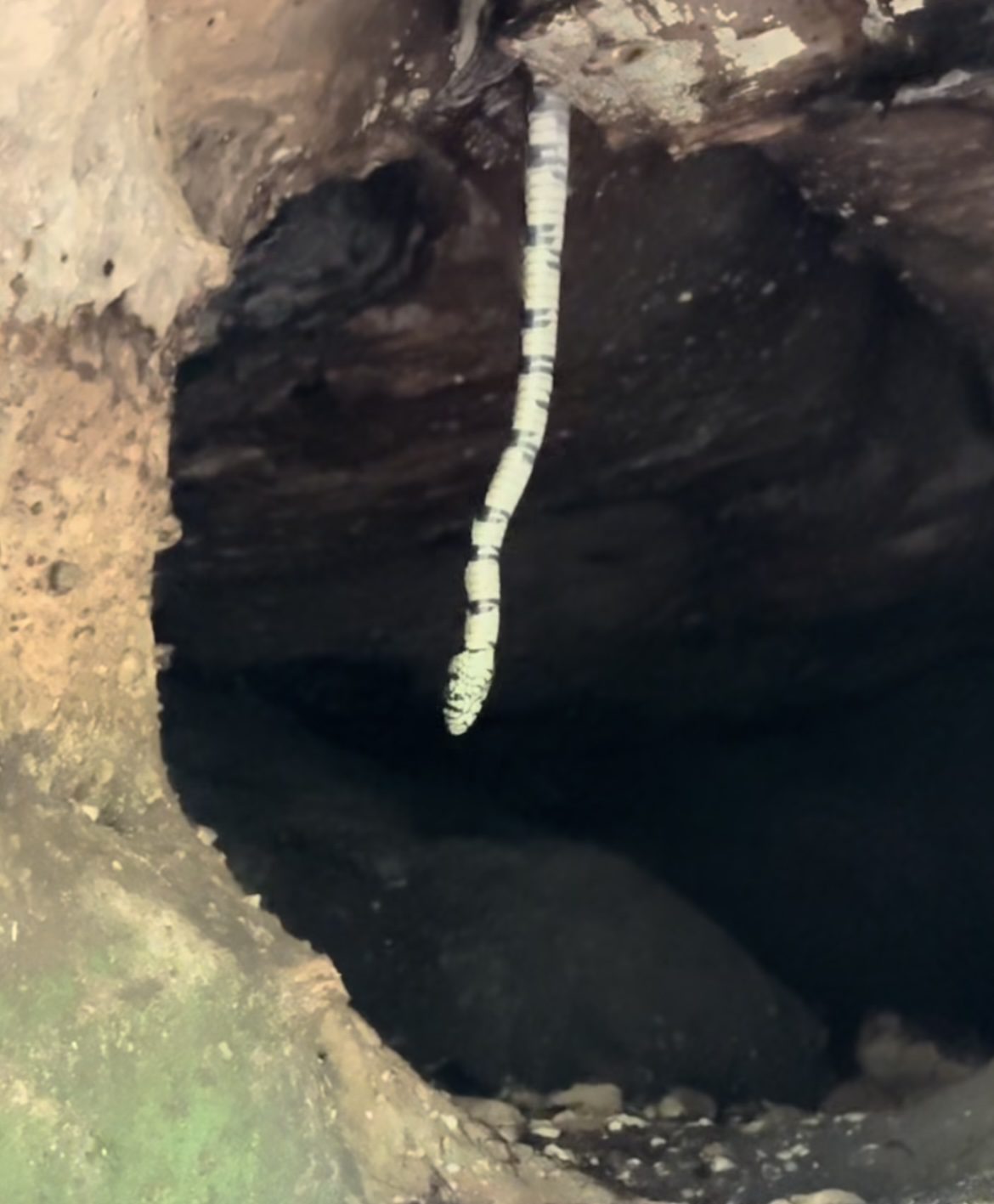 No vídeo, é possível observar o animal pendurado em uma formação rochosa dentro da caverna, evidenciando o tamanho impressionante da serpente. O registro rapidamente despertou curiosidade entre internautas, que destacaram tanto a imponência quanto a beleza do animal.