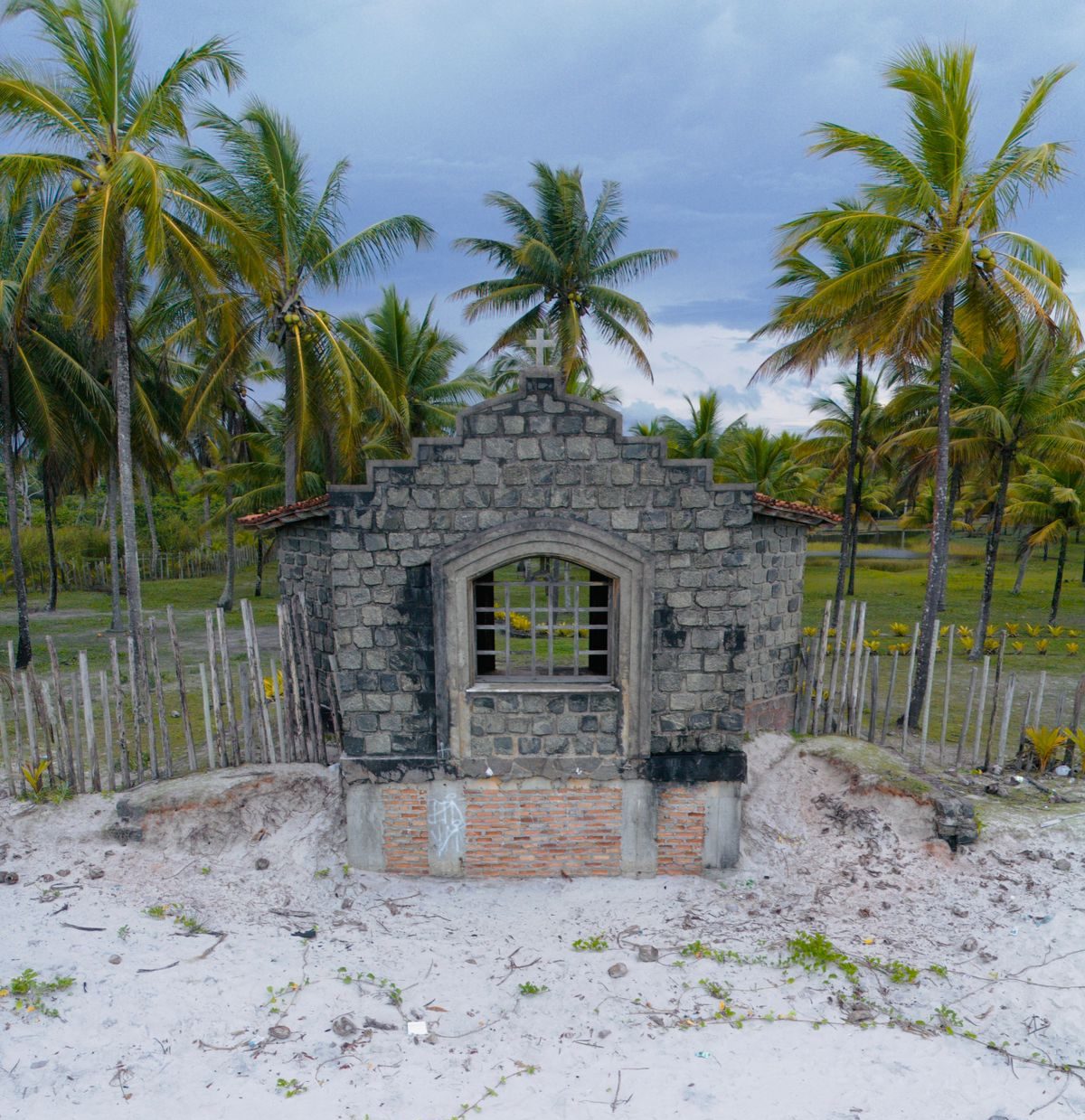 “Andando pela praia me deparei com essa igreja e fiquei curioso sobre a história dela. Fiz imagens aéreas de drone e gostaria de saber se alguém conhece ou pode contar um pouco dessa história.”